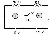 and $54{i_2} = - 6 - 12$ $⇒$ ${i_2} = - \frac{1}{3}\,A$