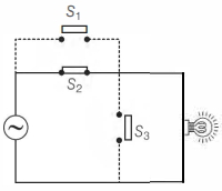 On closing $S_2$ alone the circuit containing bulb is complete. Hence, bulb will light up when $S_2$ is closed alongwith $S_3$ but $S_1$ is open. Option $(c)$ is correct.