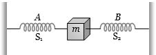 In the figure, ${S_1}$ and ${S_2}$ are identical springs. The oscillation frequency of the mass $m$ is $f$. If one spring is removed, the frequency will become