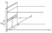 'Torque on bottom length ( $O Z$ in diagram) due to force of water on strip of width $d y$ is