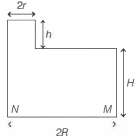 A cylinder containing water, stands on a table of height $H$. A small hole is punched in the side of cylinder at its base. The stream of water strikes the ground at a horizontal distance $R$ from the table. Then the depth of water in the cylinder is ............