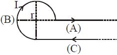 $=0+\frac{\mu_{0}}{4 \pi} \frac{3 \pi \mathrm{I}}{2 \mathrm{r}}+\frac{\mu_{0} \mathrm{I}}{4 \pi \mathrm{r}}=\frac{\mu_{0}}{4 \pi} \frac{\mathrm{I}}{\mathrm{r}}\left(\frac{3 \pi}{2}+1\right)$