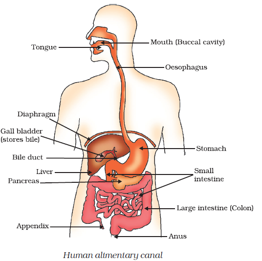 Human alimentary canal consists of organs of digestion which are namely, in sequence, mouth, oesophagus, stomach, small intestine, large intestine and anus.