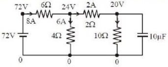 Determine the charge on the capacitor in the following circuit ................ $\mu C$