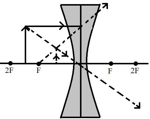 Draw ray diagrams showing the image formation by a concave lens when an object is placed:Between focus and twice the focal length of the lens.