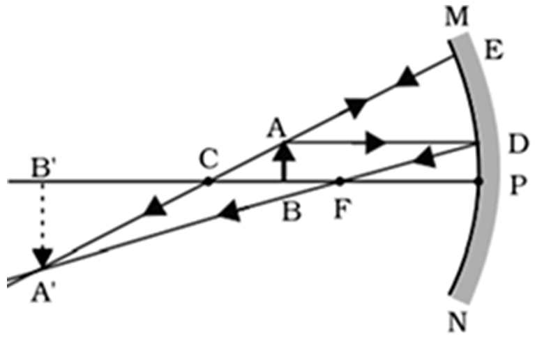 Draw ray diagrams showing the image formation by a concave mirror when an object is placed:Between focus and centre of curvature of the mirror.