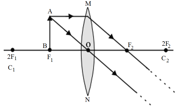 Draw ray diagrams showing the image formation by a convex lens when an object is placed: