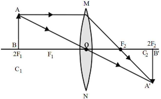 Draw ray diagrams showing the image formation by a convex lens when an object is placed:At twice the focal length of the lens.