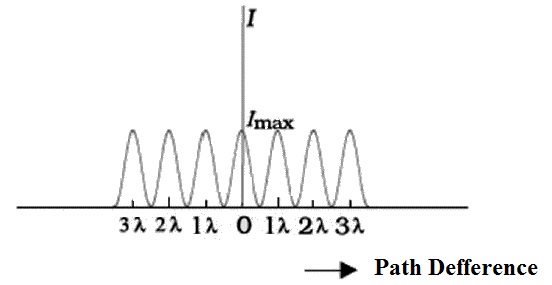All fringes have equal width. Different (/changing) width.