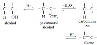 Dehydration of alcohol to alkene in presence of concentrated $\ce{H_2SO_{4}}$ involves following steps$:$