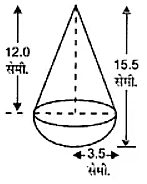 एक खिलौना त्रिज्या $3.5 \ cm$ वाले एक शंकु के आकार का है, जो उसी त्रिज्या वाले एक अर्धगोले पर अध्यारोपित है। इस खिलौने की संपूर्ण ऊँचाई $15.5 \ cm$ है। इस खिलौने का संपूर्ण पृष्ठीय क्षेत्रफल ज्ञात कीजिए।