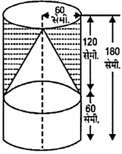 $= \left[\frac{1}{3} \times \frac{22}{7} \times 60^{2} \times 120\right]+\left[\frac{2}{3} \times \frac{22}{7} \times 60^{3}\right]$ सेमी$.^3$