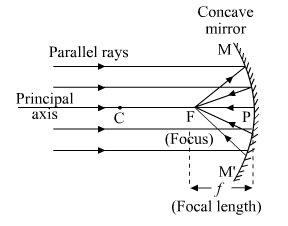 All the light rays which are parallel to the principal axis of a concave mirror, converge at the the principal focus (F) after reflection from the mirror. Since a concave mirror converges a parallel beam of light rays, it is also called a converging mirror.