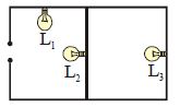 Figure shows three similar lamp. $L_1,L_2$ and $L_3$ connected across a power supply. If the lamp $L_3$ fuses, how will the light emitted by $L_1$ and $L_2$ change ?