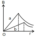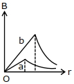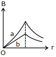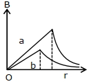 Figure $A$ and $B$ shown two long straight wires of circular cross-section ($a$ and $b$ with $a$ $<$ $b$), carrying current $I$ which is uniformly distributed across the cross-section. The magnitude of magnetic field $B$ varies with radius $r$ and can be represented as
