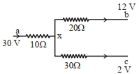 $\therefore \text { Current through } 20\,\Omega=\frac{x-12}{20}$