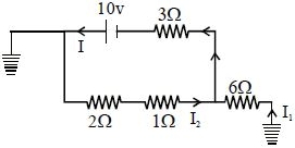 $I_{1}=\frac{3}{9} \times 2=\frac{2}{3} \,A$