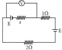 In the given circuit, an ideal voltmeter connected across the $10\,\Omega $ resistance reads $2\, V$. The internal resistance $r$, of each cell is ................... $\Omega$