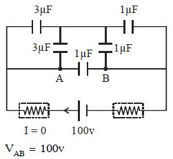 Find potential difference between $A$ and $B$ in given circuit in steady state ............... $\mathrm{V}$