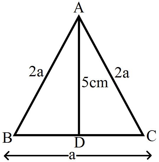 Given: $\triangle\text{ABC}$ in which AB = AC = 2a units and BC = a units. Const: Draw $\text{AD}\perp\text{BC}$ then D is the midpoint of BC.