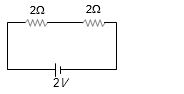 Power $P = \frac{{{V^2}}}{R} = \frac{{{{(2)}^2}}}{4} = 1\,W$.