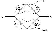 a Since the given bridge is balanced, hence there will be no current through $9\,\Omega $ resistance. This resistance has no effect and must be ignored in the calculations.