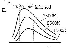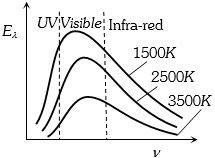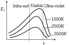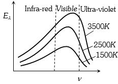 c (c)According to Wein's law ${\lambda _m} \propto \frac{1}{T}$==> ${\nu _m} \propto T$. As the temperature of body increases, frequency corresponding to maximum energy in radiation ($V_m$) increases this is shown in graph $(c)$ .