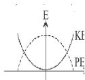 For a simple pendulum, a graph is plotted between its kinetic energy $(KE)$ and potential energy $(PE)$ against its displacement $d$. Which one of the following represents these correctly? (graphs are schematic and not drawn to scale)