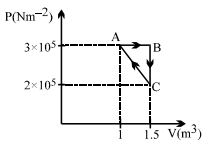 Considere the thermodynamics cycle shown on $PV$ diagram. The process $A \rightarrow B$ is isobaric, $B \rightarrow C$ is isochoric and $C \rightarrow A$ is a straight line process. The following internal energy and heat are given $: \Delta U_{A \rightarrow B} = + 400\,\, kJ$ and $Q_{B \rightarrow C} = - 500\,\, kJ$ The heat flow in the process $Q_{C \rightarrow A}$ is ...... $kJ$