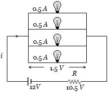 Hence for resistance $V = i\,R$ $ \Rightarrow $ $10.5 = 2 \times R$ $ \Rightarrow $ $R = \frac{{21}}{4}\,\Omega $