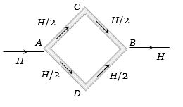 Heat current will flow from $A$ to $B$ via path $ACB$ and $ADB$ . Since all the rod are identical so ($\Delta \theta_{AC} > \Delta \theta_{AD}$
