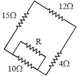 Four resistances of $15\; \Omega, 12\; \Omega, 4 \;\Omega$ and $10\; \Omega$ respectively in cyclic order to form Wheats tone's network. The resistance that is to be connected in parallel with the resistance of $10\; \Omega$ to balance the network is .................. $\Omega$