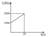 A detector is released from rest over a source of sound of frequency $f = 10^3 \,\,Hz$. The frequency observed by the detector at time $t$ is plotted in the graph. The speed of sound in air is $(g = 10 \,\,m/s^2)$ ... $m/s$