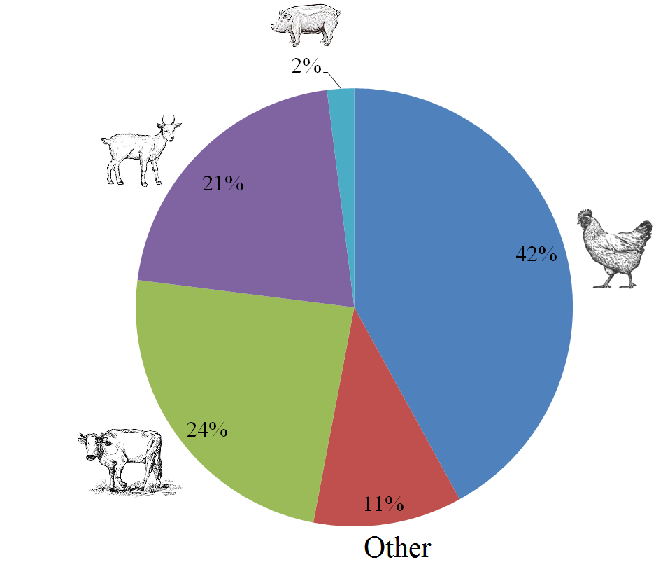 Other animals which include camels, asses, horses, ponies and mules are in the lowest rung.