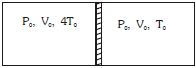 Figure shows a cylindrical adiabatic container of total volume $2V_0$ divided into two equal parts by a conducting piston (which is free to move). Each part containing identical gas at pressure $P_0$ . Initially temperature of left and right part is $4T_0$ and $T_0$ respectively. An external force is applied on the piston to keep the piston at rest. Find the value of external force required when thermal equilibrium is reached. ( $A =$ Area of piston)