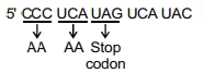 How many amino acids will be coded by the $mRNA$ sequence $-5$ $'CCCUCAUAGUCAUAC3'$ if a adenosine residue is inserted after $12^{th}$ nucleotide?