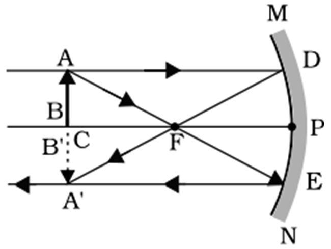Draw a ray diagram to show the path of the reflected ray corresponding to an incident ray which is directed parallel to the principal axis of a convex mirror. Mark on it the angle of incident and the angle of reflection.