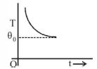 If a piece of metal is heated to temperature $\theta$ and then allowed to cool in a room which is at temperature $\theta_0$, the graph between the temperature $T$ of the metal and time t will be closest to