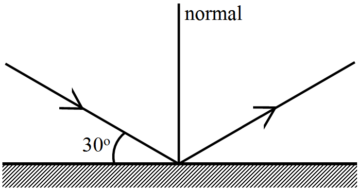 If a ray of light is incident on a plane mirror such that it makes an angle of 30with the mirror, then will be the angle of reflection?