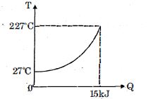 $Q$ amount of heat is given to $0.5\  mole$ of an ide al mono-atomic gas by a process $TV^n$  constant. Following graph shows variation of temperature with $Q$ . Find value of $n$.