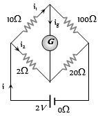 In the circuit shown below the resistance of the galvanometer is $20\, \Omega$ . In which case of the following alternatives are the currents arranged strictly in the decreasing order