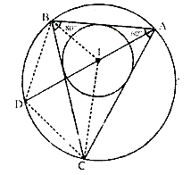If I is the incentre of triangle ABC and AI when produced meets the circumcircle of triangle ABC in point D. If ∠BAC = 66° and ∠ABC = 80°. Calculate : ∠DBC
