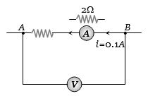 Reading of voltmeter = Potential difference between $A$ and $B$ = $i (R + 2)$