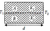 Two rods $A$ and $B$ of different materials are welded together as shown in figure.Their thermal conductivities are $K_1$ and $K_2$ The thermal conductivity of the composite rod will be