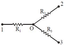 .............. $A$ the current flowing through the resistance $R_2$ of the circuit shown in fig if the resistance are equal to $R_1 = 20\ \Omega, R_2 = 30 \ \Omega$ and $R_3 = 60 \ \Omega$ and potentials of points $1, 2$ and $3$ are equal to $V_1= 20\, V,$ $V_2 = 30\ V$ and $V_3 = 60\ V$