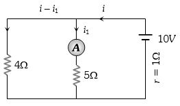 if the internal resistance of the battery is $1\, ohm$, then what is the reading of ammeter