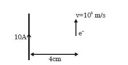 An electron moves straight inside a charged parallel plate capacitor of uniform charge density. The space between the plates is filled with uniform magnetic field of intensity $B ,$ as shown in the figure, Neglecting effect of gravity, the time of straight line motion of the electron in the capacitor is