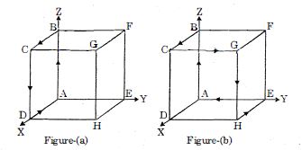 Current $I$ is flowing along the path $ABCDA$ consisting of four edges of a cube (figure $-a$), produces a magnetic field $B_0$ at the centre of the cube. Find the magnetic field $B$ produced at the center of the cube by a current $I$ flowing along the path of the six edges $ABCGHEA$ (figure $b$)