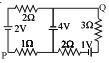 If power dissipated in the $9 \,\Omega$ resistor in the circuit shown is $36\,W$, the potential difference across the $2 \,\Omega$ resistor is .......... $V$