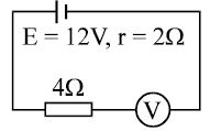 By error, a student places moving-coil voltmeter $V$ (nearly ideal) in series with the resistance in a circuit in order to read the current, as shown. The voltmeter reading will be ............ $V$